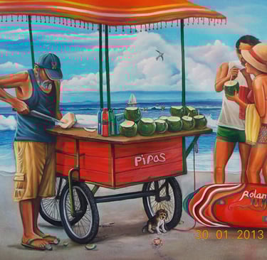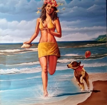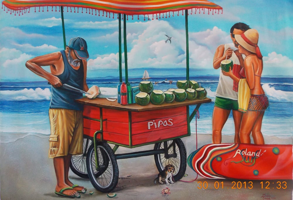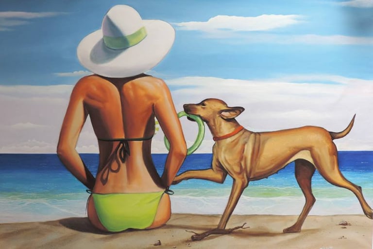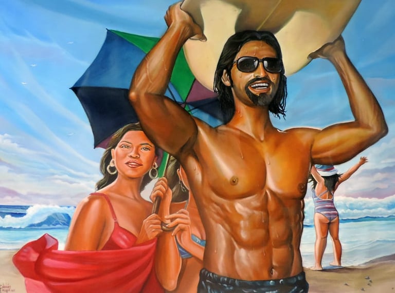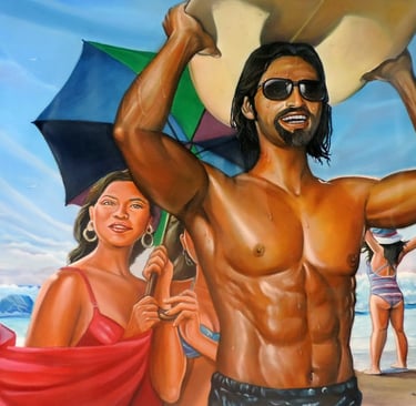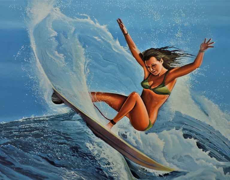 Pintura al óleo "Surf y playa"