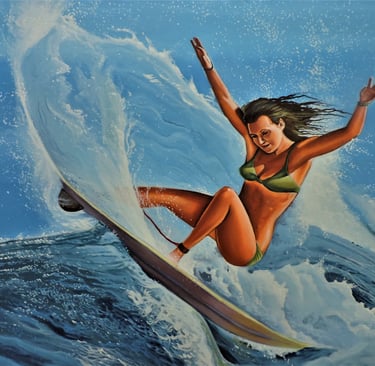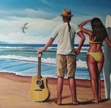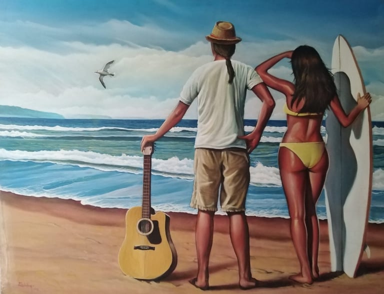 Pintura al óleo "Mar, musica, surf, libertad..."