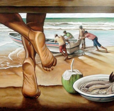 Pintura al óleo "Lo que nos de el mar"